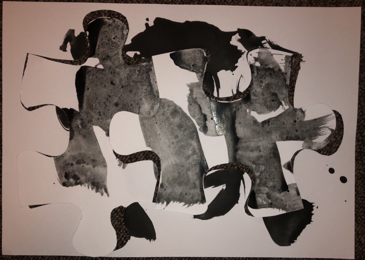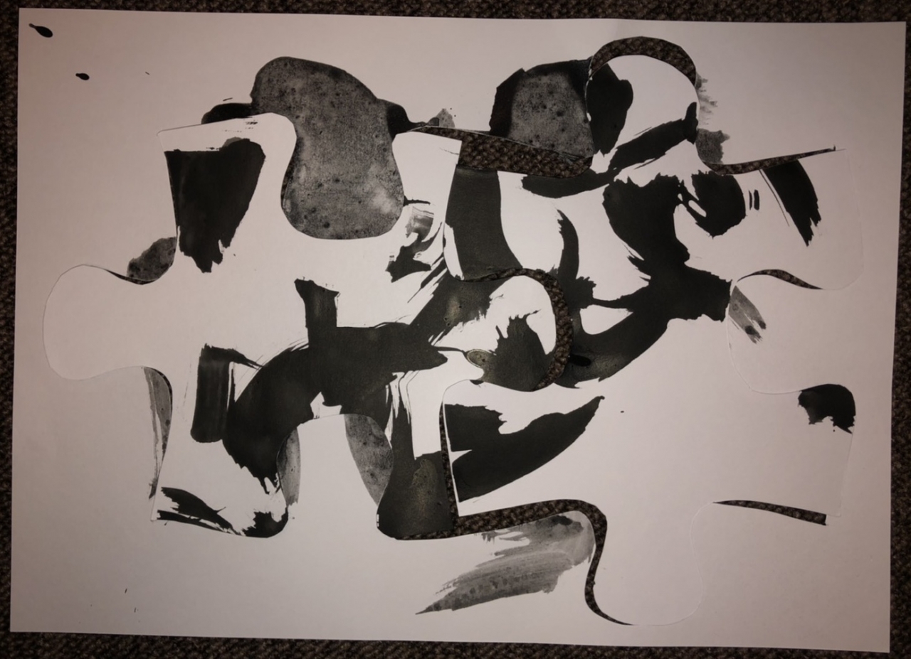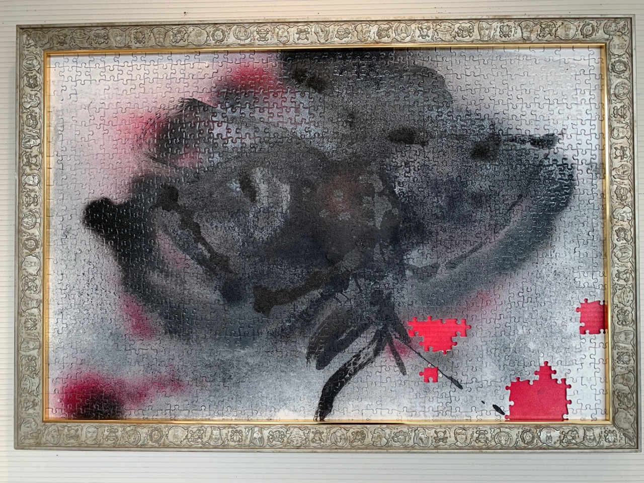 パズルシリーズは見る人が想像して完成する書で、それを見た人が鏡のように自分の存在を見出せるものである。単純な形をはめ込むパズル。同じような形のピースだが、どんなにたくさんあっても一つとして同じものはない。それはまるで、コピーや真似では表せない微妙な違い、筆を持ち一瞬で書き上げる「書」のようでもある。